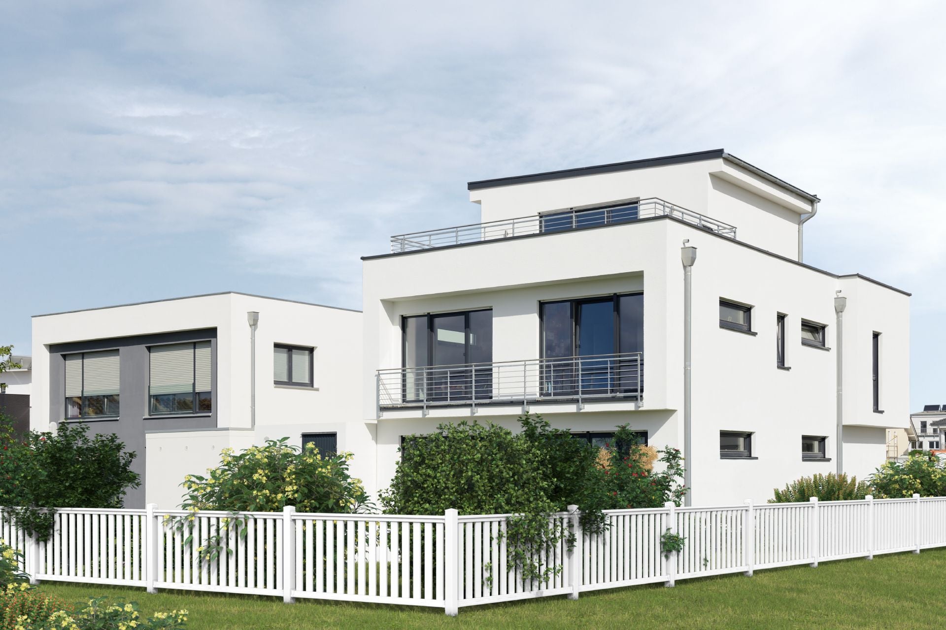 Relingzaun PVC | Sehr hoch | Niedrig | Exakte Ausrichtung erforderlich, um gleichmäßige Linienführung zu sichern | Designorientierte Vorgärten mit moderner Architektur |
