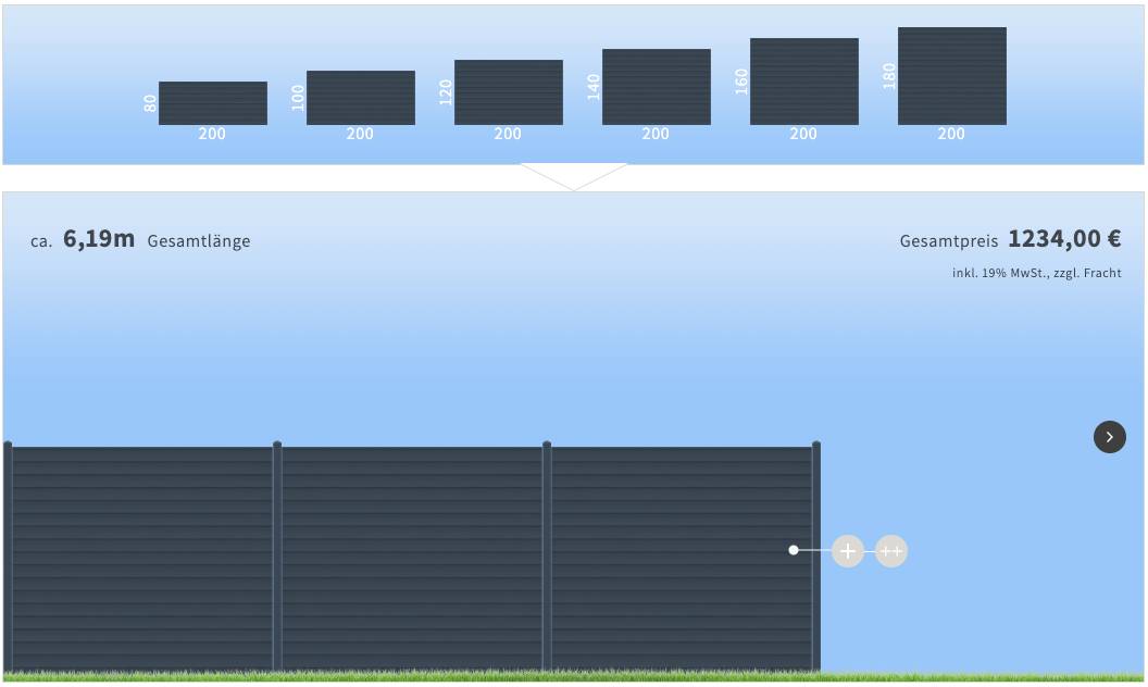 Die empfohlene Maximalhöhe beträgt 180 cm, da diese in vielen Bundesländern genehmigungsfrei realisierbar ist. Sonderhöhen können durch Kürzen oder Staffelung der Profile umgesetzt werden.